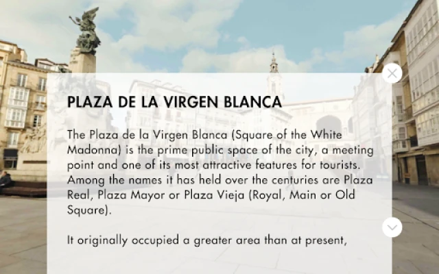 The virtual reconstruction included in this app aims to show the architectural atmosphere that the town of Vitoria-Gasteiz (Basque Country, Spain) showed in 1850, before the demolition of the gateways that protected the medieval walls and its subsequent modernisation.