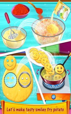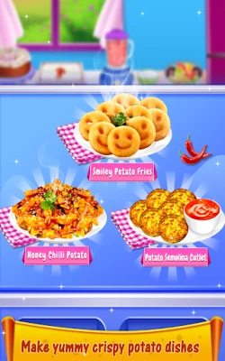 Be a master chef and make some tasty crispy fry potato food for your family members. We've more than 3+ different food items to cook in this game. First, start with Honey Chilli Potato and follow the steps to make your fried food ready to eat! Also you can make Smiley Potato Fries and Potato Semolina Cutlet as per your taste. We've added many decorative items as well to look your food so attractive.