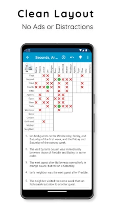 Penny Dell magazine Logic Puzzles for the true logic problem fanatic. Try before you buy with the first ten puzzles included free with all features enabled and never any ads, nags or spyware. If you like it, thirteen more volumes are available for purchase, each with thirty unique puzzles, for hours of puzzling fun.