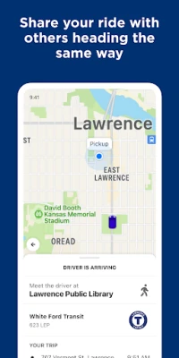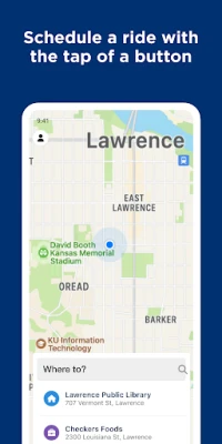 Schedule an on-demand transit ride with the tap of a button. Get picked up and dropped off in Lawrence wherever you want, and share your ride with others headed the same way. Available overnight and Sunday and free to use!