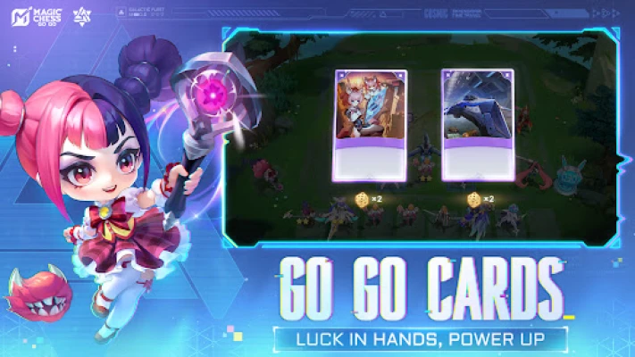 Pick from various Go Go Cards at key stages to maximize your advantage and turn the table. Every card could be the key to winning this thrilling chess battle!