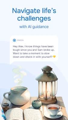 Navigate life’s challenges with Onsen – your personalized AI companion that’s always there to support your mental and emotional wellbeing. Whether you’re dealing with stress, anxiety, or just need someone to talk to, Onsen offers proven techniques and compassionate guidance to help you feel more balanced, supported, and in control.