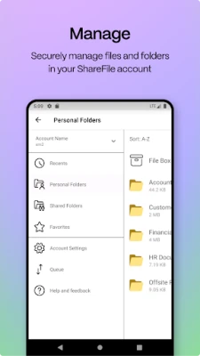 -Download and upload files between your ShareFile account and mobile device in foreground.