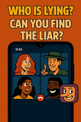 Who Is Lying? is a fast-paced live video social game where 3–6 players join a video call, get secret roles, and try to outsmart each other in a battle of wits and deception!